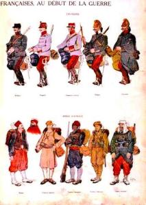 Pois bem, o exército francês possuía, no início da Grande Guerra, 777.000 combatentes franceses e 46.000 homens das forças coloniais. Havia, ainda, a Legião Estrangeira, sempre atuante em todos os conflitos em que a França participou desde sua criação (1831).