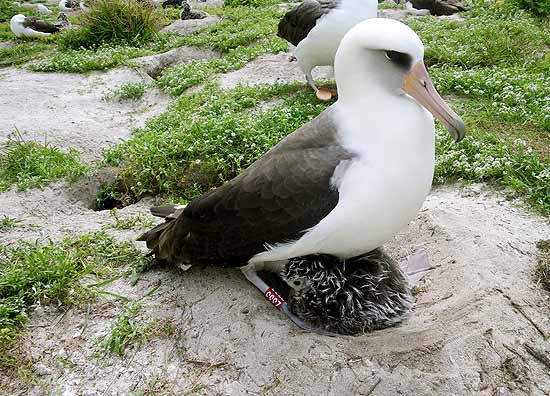 Ils l’ont repérée en compagnie de son dernier-né il y a quelques jours au large de Sand Island, l’une des îles de l’archipel de Midway balayée par un raz-de-marée de 1,5 mètre déclenché par le séisme du 11 mars au Japon.