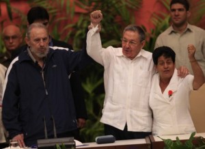 Fidel Castro at Cuba congress alongside Raul