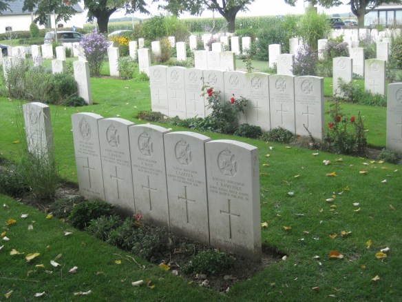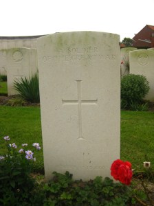 Outra curiosidade: na lápide deveria constar o símbolo do regimento ao qual pertencia o morto, seu nome e, vez por outra, um epitáfio. Quando não se podia identificar o morto, colocava-se simplesmente “um soldado da Grande Guerra”, “um soldado do Império Britânico” ou mesmo “um soldado do regimento tal”… (É muito tocante estar em pé diante de uma lápide onde se vê a inscrição “a soldier of the Great War”). Também poderia constar a medalha ou comenda recebida pelo morto. E, naturalmente, gravada na pedra, uma cruz, uma estrela de Davi ou mesmo um crescente, dependendo da religião do morto.