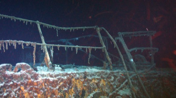 The hulk of the Gairsoppa was covered in rivulets of rust known as rusticles, which look like brownish icicles. But still standing bright and shiny on the deck was a waist-high compass used by the helmsmen. There, small creatures with long tentacles had made themselves at home.