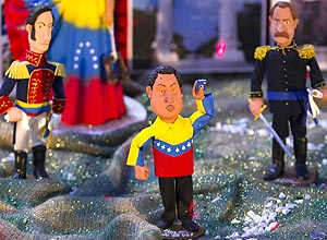 “Oitenta por cento dos venezuelanos estão com ele. Esse processo não vai parar”, disse o vendedor Carlos Bonilla. Questionado sobre se as vendas continuariam fortes após a reeleição de Chávez no próximo ano, ele e um casal de amigos riram confiantes e apertaram o botão de um boneco feito na China para que o “comandante” desse a resposta: