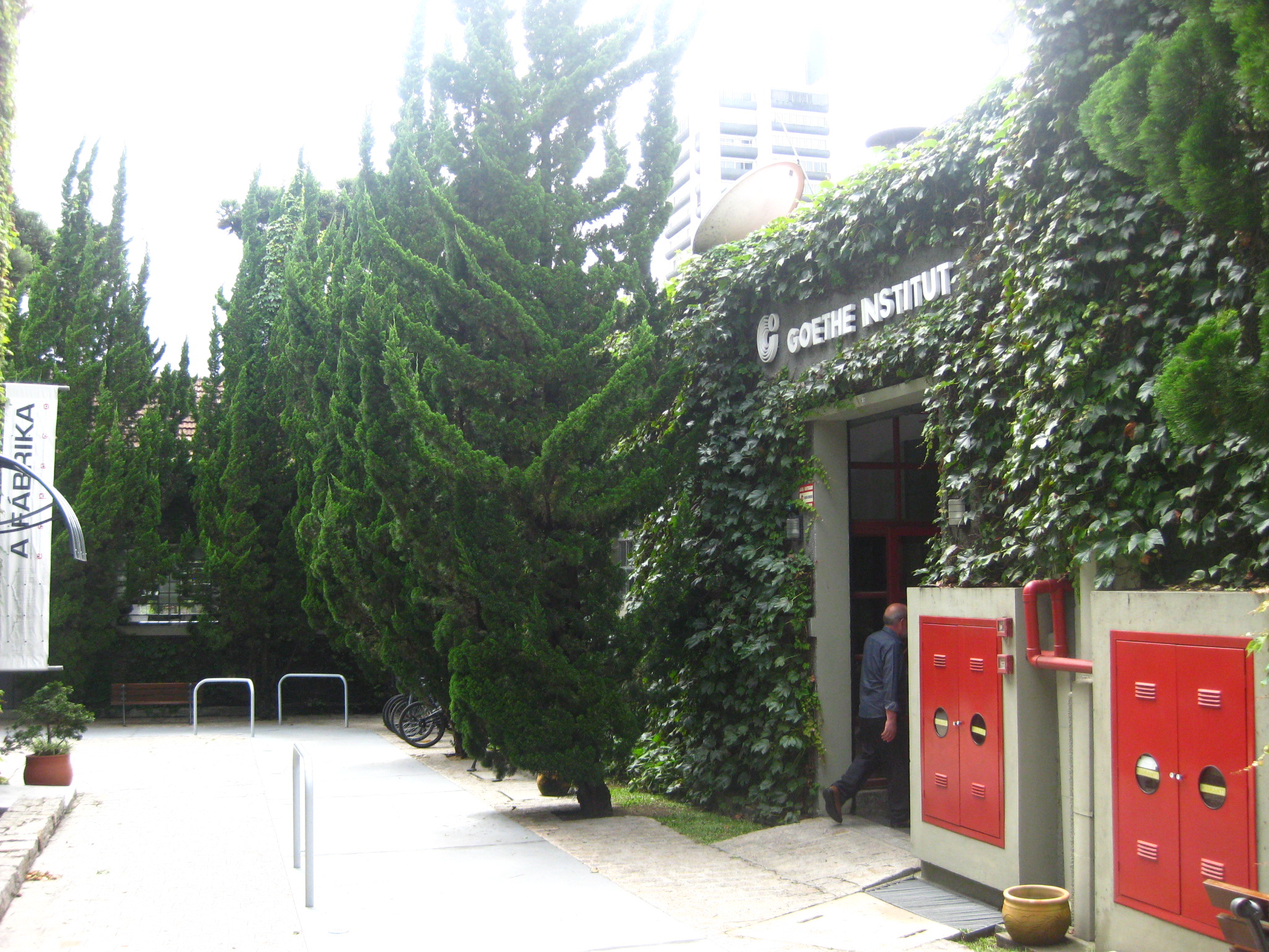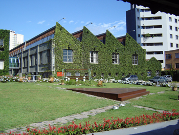 Estive em outro local interessante e inusitado de Curitiba, fora do circuito turístico: a Fábrika, um complexo de instalações para o desenvolvimento intelectual e físico no Alto da XV e que seria o sonho de consumo de muita gente em Brasília (e de leitores deste site). Explico: nas antigas instalações de uma fábrica de fitas e bandeiras desativada em 1980, foi estruturado um complexo cultural que reúne o Instituto Goethe, a Aliança Francesa e o Instituto Cervantes! Além disso, há o consulado da França, os Juizados Especiais de Pequenas Causas e uma academia de ginástica! Ou seja, a pessoa pode ir tratar do corpo, da mente e, de quebra, ainda resolve questões jurídicas, eheheh!