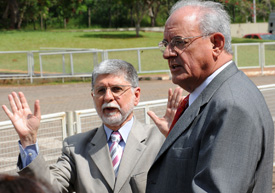 BrasÃlia – Os ministros de Relações Exteriores, Celso Amorim, e da Defesa, Nelson Jobim, falam á imprensa ao deixar reunião com o presidente Luiz Inácio Lula da Silva no CCBB, sede provisória do governo